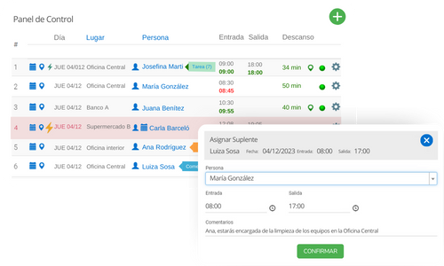 Posibilita la gestión de suplencias, marcas sin planificación, cambios de horarios, etc.