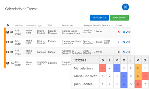Permite planificar la jornada de los trabajadores por medio de actividades y horarios.
