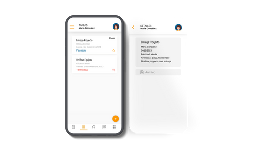 La app mitrabajo Personal ofrece a los colaboradores la capacidad de visualizar las tareas asignadas por sus supervisores, permitiéndoles incluso crear nuevas tareas según sea necesario. En la sección de detalles, los usuarios podrán acceder al nombre y descripción de cada tarea, revisar archivos adjuntos cuando estén disponibles, así como verificar la fecha de vencimiento, el nivel de prioridad y la ubicación asignada.